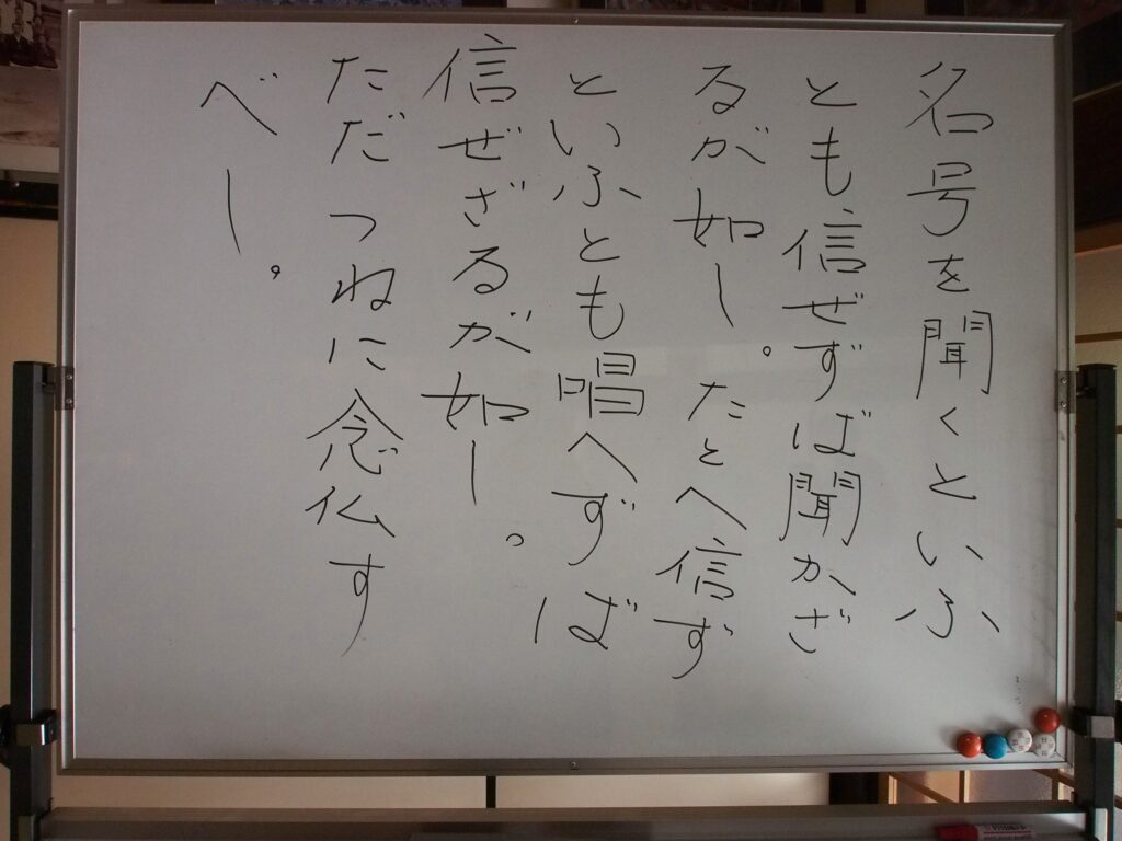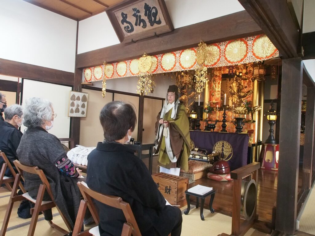 お十夜(じゅうや)は、10月から11月にかけて浄土宗寺院で行われる秋の念仏行事です。「十夜法要」「十夜講」「十夜念仏」など色々な呼び方がありますが、正式には「十日十夜法要」と言います。もともとは旧暦の10月5日夜から15日の朝まで、十日十夜にわたってお念仏をとなえる法要でした。当寺院では、毎年11月15日に法要を行っています。今年は法然上人のお言葉をお借りしてお話ししました。「名号をきくといふとも、信ぜずば聞かざるが如し、たとひ信ずというとも、称えずば信ぜざるが如し、只つねに念仏すべし」