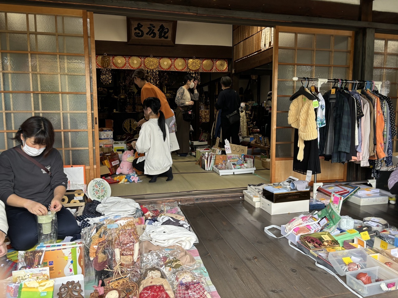おうちに眠っている品物や手作り作品のフリーマーケットを開催しました。13組出店していただき、「このお寺に初めて来ました」という地元の皆さんも多く、楽しんでいただきました。次回は2025年5月に開催する予定です。皆さん、ぜひお越しください。